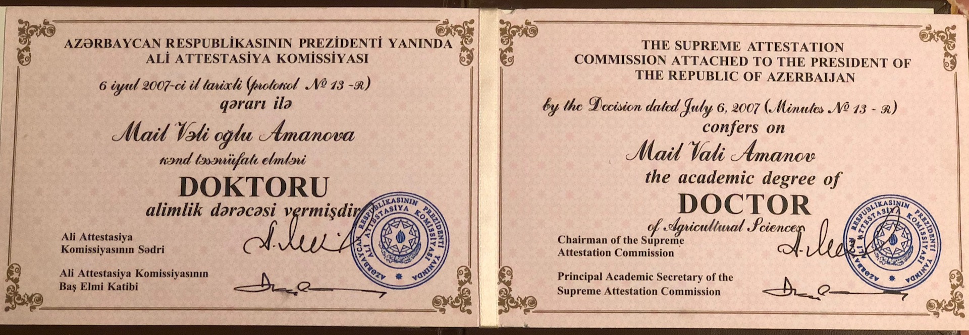 Kənd Təsərrüfatı Elmləri DOKTORU |