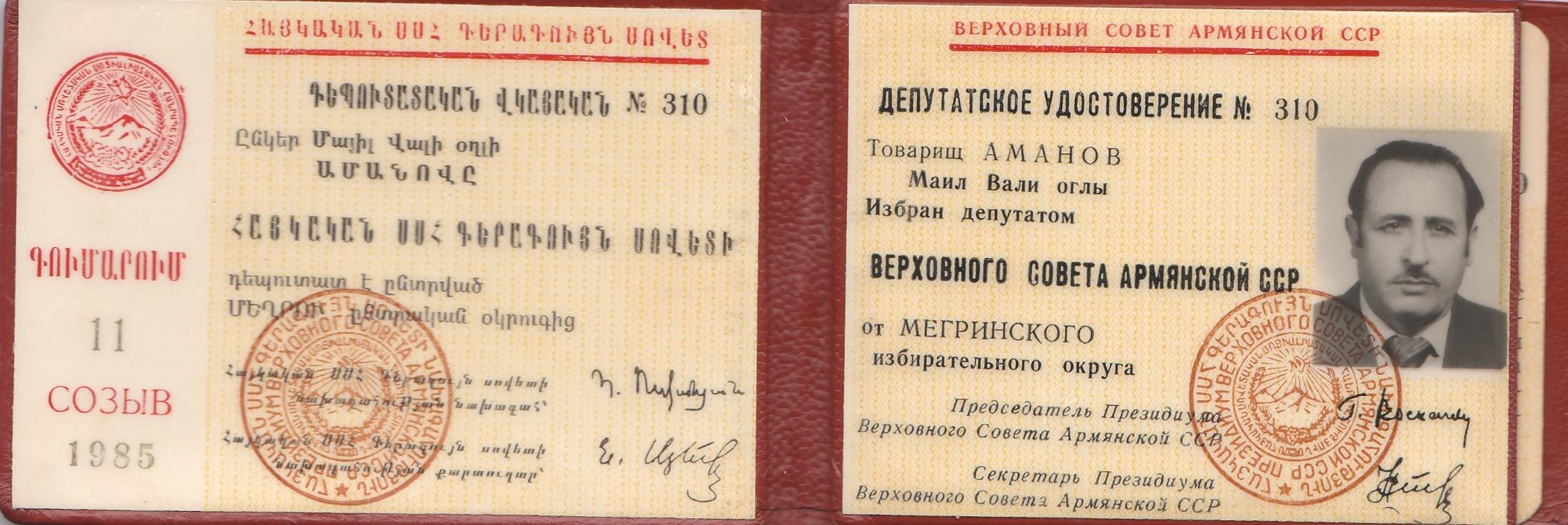 Ermənistan SSR Mərkəzi Komitəsinin Meğri rayonu üzrə deputatı. |