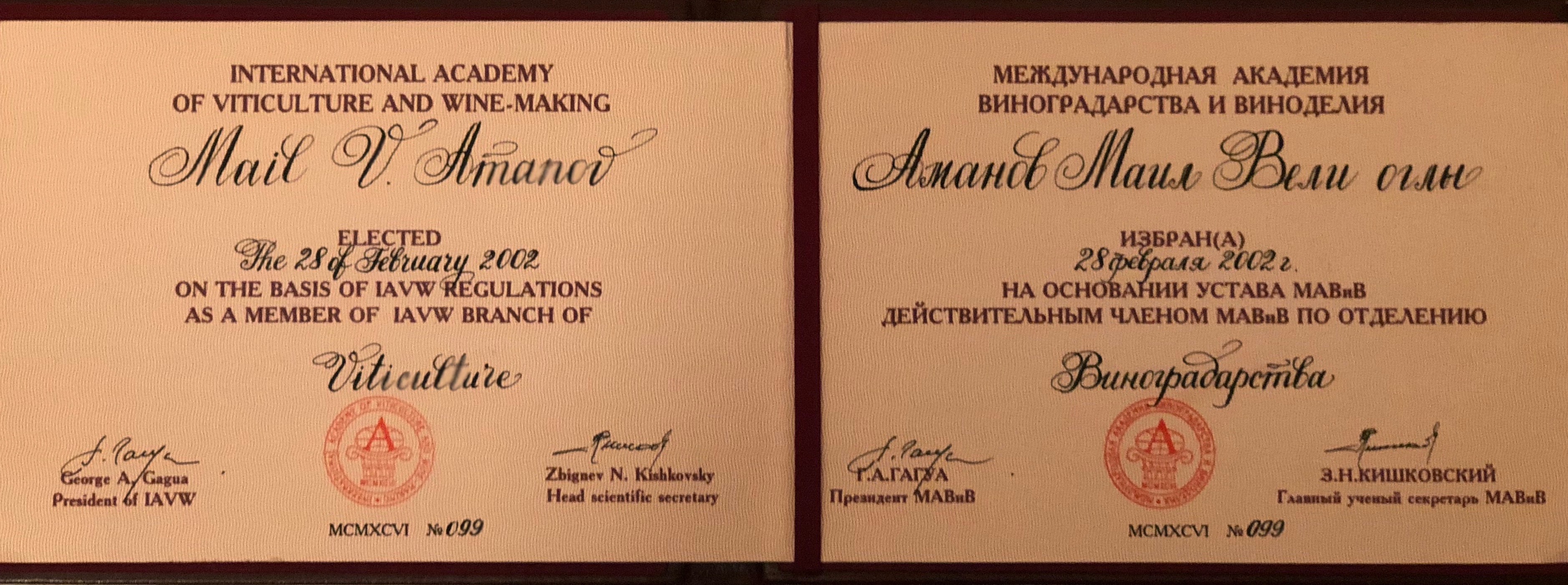 Üzümçülük və şərabçılıq üzrə Dünya Akademiyasının şərabçılıq bölməsinin üzvü. |